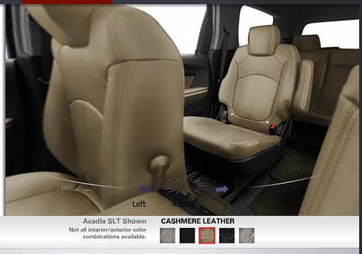 Available colors. I applaud GM for placing the vehicles available colors and ability to view them in 360° views on each vehicle's homepage. However, this is only available for the exterior colors on the Chevrolet website. On other GM websites, only an interior swatch pops up instead of the full 360° view. GMC's website has the ability to see 360° interiors in any color—all GM websites should offer this.