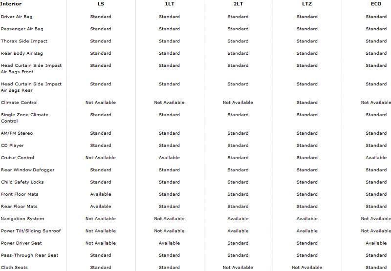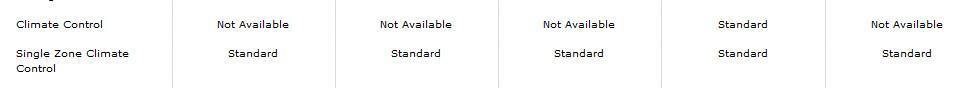 Labeling of features: Some features are listed using similar or identical names. An example from the Chevrolet website is: "Climate Control" is only available in the LTZ trim on the Chevrolet Cruze, whereas "Single Zone Climate Control", right below it, is available on all trims. Your average car shopper is not going to be able to discern between the two and will be unaware the former is referring to Automatic Climate Control and the latter, manual. Also, it could be better organized. If the Auto Climate Control is an option (or rather only available on the highest trim), why not have it featured after you've stated Manual Climate Control is available on all trims (other than the LTZ Cruze as you can't get it with Manual), which should simply have a (-)below it.