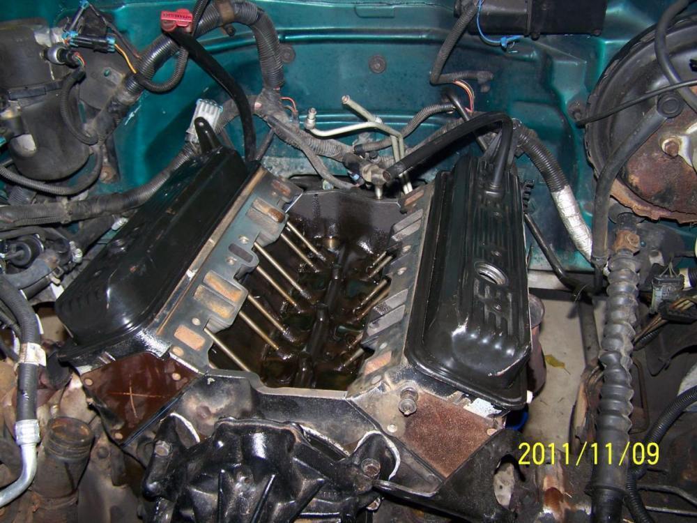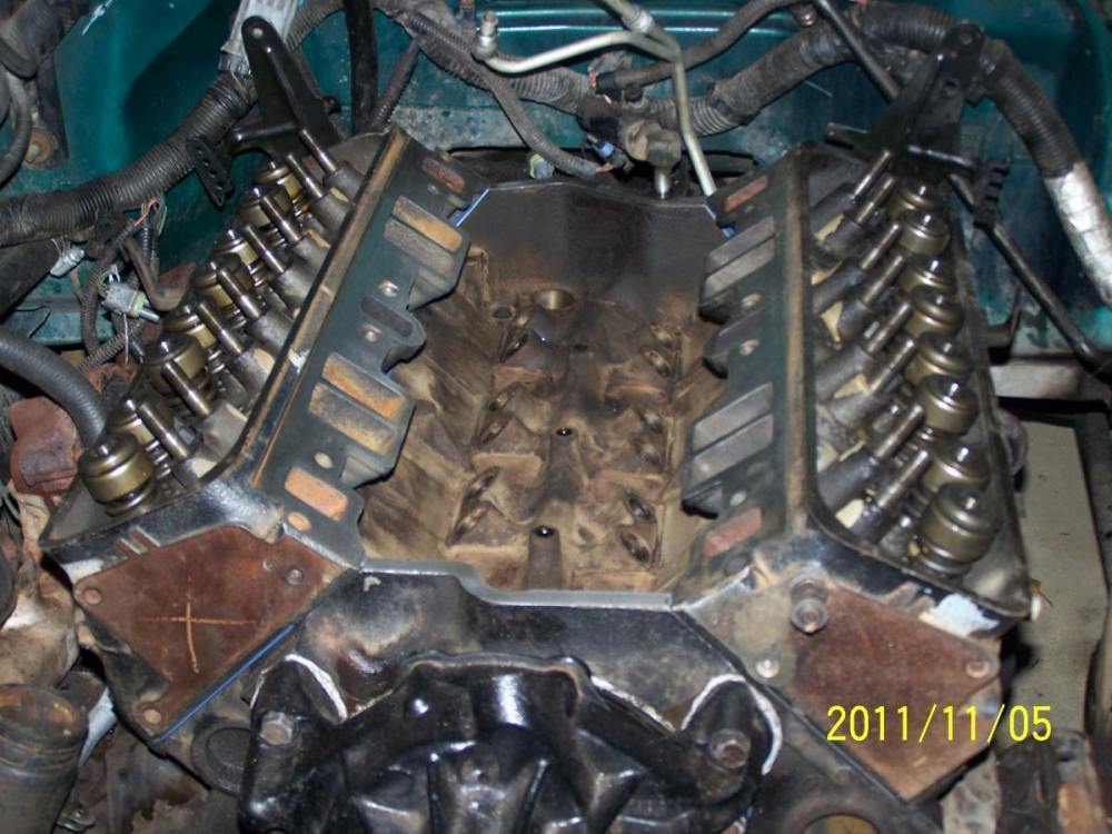 November 1, 201114 yr Author Heads are about ready to come off, but I'm just too beat. The exhaust manifolds where much easier than I expected, and interestingly, the most rearward bolt on both sides was simply absent. Those two would have been the toughest to remove, but I wonder why they weren't there, and why I had no exhaust leaks. The other cool thing is that once I remove the dipstick tube, I can slide the whole exhaust rearward and out of my way. I have already pulled the rockers and pushrods from the driver's side head but I stopped so that I can get a shot as is to show you guys tomorrow. Given about an hour, both heads should be on the deck. My biggest worry at the moment is being able to actually lift them out of the engine bay - the physics are all wrong. Trying to pull such heavy pieces out of what amounts to a deep hole should be an experience. Edited November 1, 201114 yr by Camino LS6