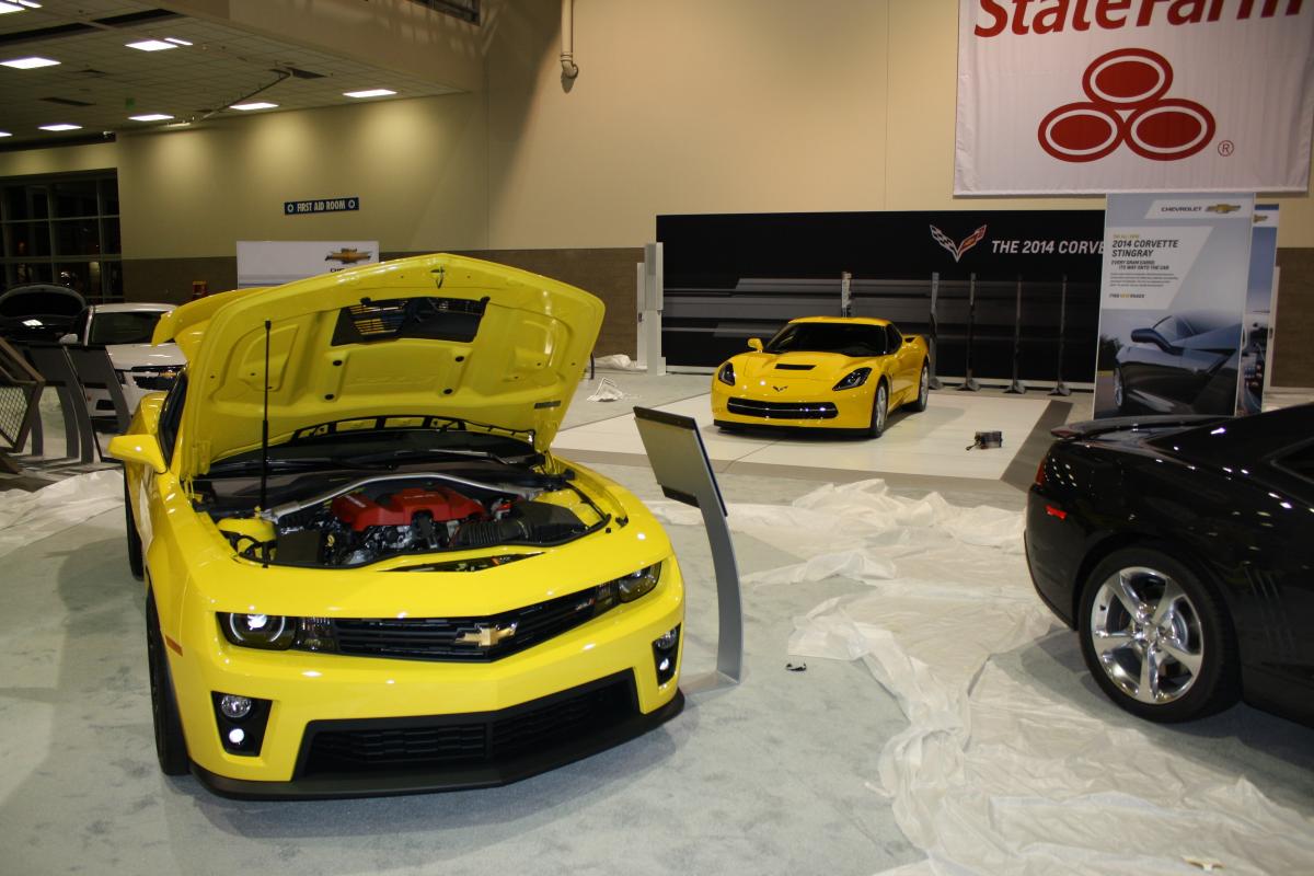 October 16, 201312 yr Author Howdy all, So will aim to get some photo's posted tomorrow, heading out to the show as it was a late night getting the booth setup since they were behind in getting carpet down and wall built. I did walk around last night and took pictures of the new Jeep Cherokee and have to say that in person this jelly bean is actually really nice and I have changed to liking it now. It was a gun metal grey with lots of metallic and had the off road package. Really sweet. The show this year is amazing, the best I have ever seen it. GM has gone all out and the new Tahoe/Subrburan and Yukon/XL/Denali's are on display which surprised me and the new trucks including the HD 1 ton dually up on a pedestal. I took a picture of the Yellow Mustang and Stingray. They are amazing. The new Spark EV is here and the list goes on and on. Will have to take some breaks so I can walk around and take more pictures.