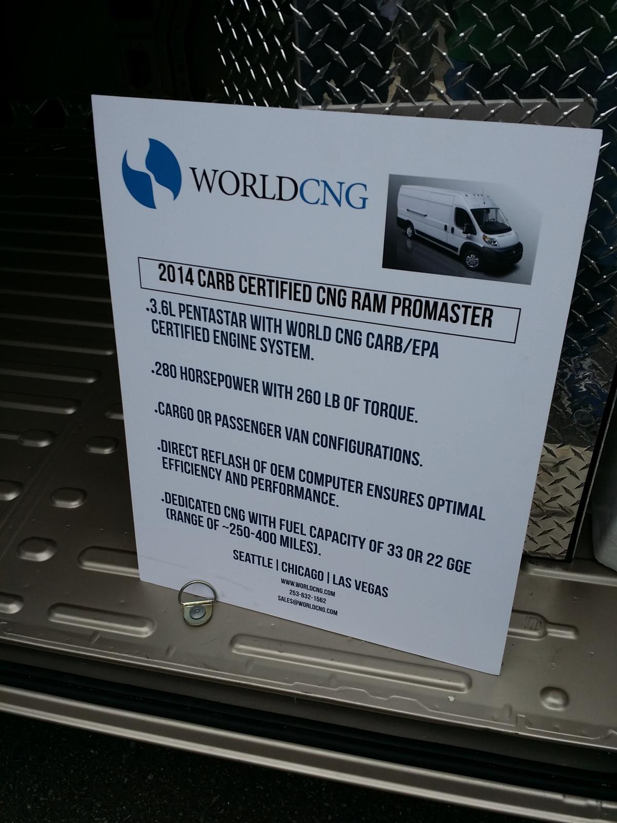 June 5, 201411 yr G. David Felt Alternative Fuels & Propulsion writer www.CheersandGears.com Wednesday 4th of June, NAFA (National Association of Fleet Administrators) had a Green Lunch Buffet to cover the upcoming changes to the pacific northwest. They covered the newest public CNG stations opening this year including a major station that will serve the public and truckers in Oregon on I5 as well as 3 new stations for Seattle. These stations will offer both LNG (Liquid Natural Gas) and CNG (Compressed Natural Gas) to the public. Washington State who has the largest ferry fleet in the nation is building 4 new ferries which will run on LNG with the goal over the next 5 years to convert the whole fleet to LNG. We were told that in Diesel form, these 4 ferry's would consume 600,000 gallons of diesel in a 24hr period. On LNG they are expecting to only consume 510,000 gallons of LNG every 24hrs. The state also said they expect to see a reduction in cost due to how clean the engines run, longer run times between maintenance and less cost to clean up environmental spills from diesel / oil. Peterbilt / Kenworth / Paccar presented showing the growing fleet of pure CNG powered trucks from medium duty to heavy duty with 7L, 9L, 10L and an upcoming 12L LNG/CNG engine options. Fleets were shown the growing list of OEM CNG auto's from Detroit big 3 and how checking the box for the $200 option for a Hardened Engine was a wise move for down the road when they must convert all auto's to CNG, BioFuel or move to Electric. Washington state has pushed back their mandate from 2015 to 2018 to give a bit more time for the Cities, Counties and state to move all public autos to CNG, Biodiesel or electric. Clean Energy announced the purchase of multiple rights to harvest the methane from landfills, animal waste, etc. around the US, scrub it clean and put it into the natural gas supply so that stations can be Redeem certified as a renewable gas source. WorldCNG presented their updated list of 2014 CNG converted auto's. They informed the audience of the new choice for businesses to public entities of having an AWD Terrain or Equinox CUV on CNG. They also brought for people to look at and check out their first converted 2014 3500 CNG Ram Promaster. There was much interest and excitement by the services and city delivery companies as well as local government agencies. While exciting to see this van in person, my personal impression is that this will sell well but not be a long lasting van. To start with, the dash is hard plastic and feels very flimsy. I honestly did not feel it was solid. Fit and finish has a long ways to go as I found many flaws and much unfinished edges in the finished area of the cab as well as at the doors. Inside of the van was aimed for refitters with many places to bolt in various shelf, draws, bins, etc. for custom configuration. Style is truly a personal choice as while I do not think it is a very good looking van, the fleet people that attended seemed to be split down the center 50/50 on love it or hate it for the style. They all loved the CNG option. Interesting note is that to reduce drag on the underside of the van the ProMasters have a very smooth finished if one can call it that to reduce drag. The flip side of this coin is that you reduce drag and get better mpg but you have no place to mount or add on options. This causes the CNG tanks to be stored in a vertical rack behind the cab in a 3 or 4 tank configuration. Have questions? Ask away!