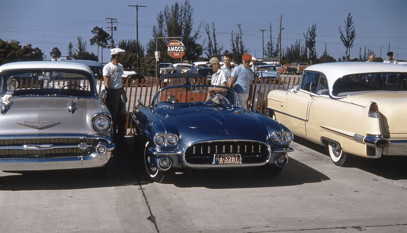 November 17, 20187 yr The 1957 Olds F-88 Mark II concept, at Sebring, probably driven there by Harley Earl. Look how teeny it was.