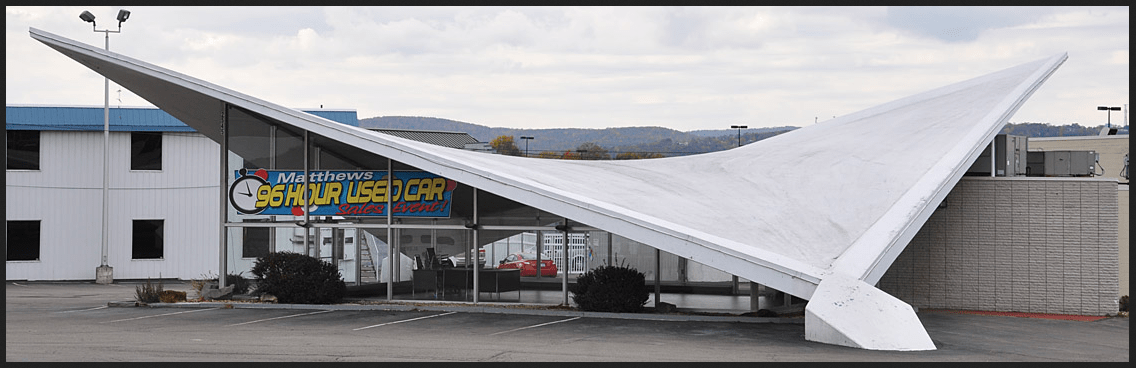 November 17, 20187 yr Ken Wilson Chevrolet dealership, built in '64. An example of the period-popular 'hyperbolic parabola' roof, it was demolished in 2016. ?