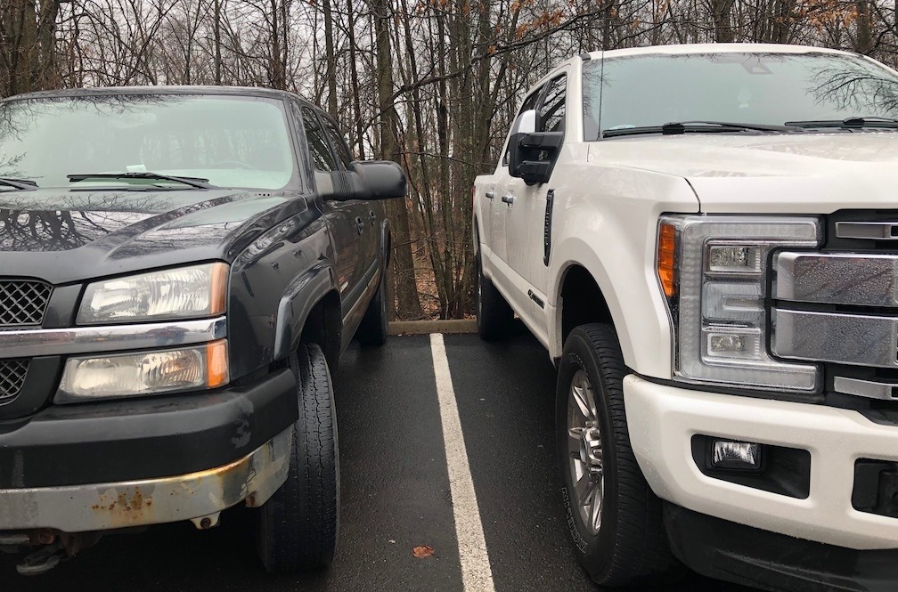 February 7, 20206 yr Interesting & telling juxtaposition : two 3/4-ton pickups, about 16 years apart. The lengths and widths are the same, but the HEIGHTS are noticeably different. The cowl height on the F-250 is about halfway thru the 2500HD's windshield.