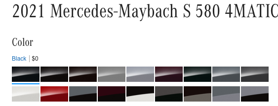 August 28, 20214 yr Unlimited colors doesn't seem to be the case with there Maybach trim. [L to R] ~ black, black, black, silver, silver, dark red, dark green, grey, grey, white, red... and seven 2-tone combos of those colors. So... 7 colors, basically. Well, it is 2 more than the Model S. ?
