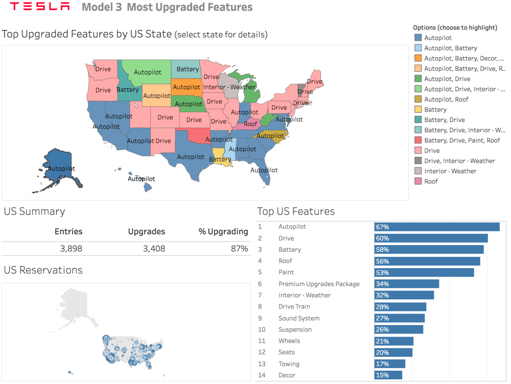 March 21, 20178 yr Author 12 minutes ago, Drew Dowdell said: I really don't feel like the two compete that much. The 3 will also end up being priced much higher than the Bolt once options are added in... so I expect the Bolt to sell fairly well. I'd rather a 3 than a Bolt for appearence sake, but I wouldn't turn down a Bolt if it was the only one of the two that was accessible to me financially. That's going to be the biggest thing with these cars (and the next gen Leaf), is financial accessibility. As I posted in the other thread; A writer on Electrek web site created his own web site to gather info about what potential owners of the Tesla 3 want for options. https://electrek.co/2017/03/21/tesla-model-3-options-autopilot-battery-upgrade/ Interesting is that pretty much everyone wants the full self driving autopilot at $8,000 and a battery upgrade which the first option is $5,000. This makes every Tesla 3 not a $35,000 auto but a $48,000 auto to start. The web site the writer created: https://model3tracker.info/ His results todate: