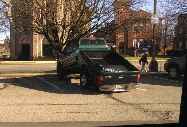 In it's defense (if you can call it that), it was still being driven (note the trailer hitch scrape on the pavement).
