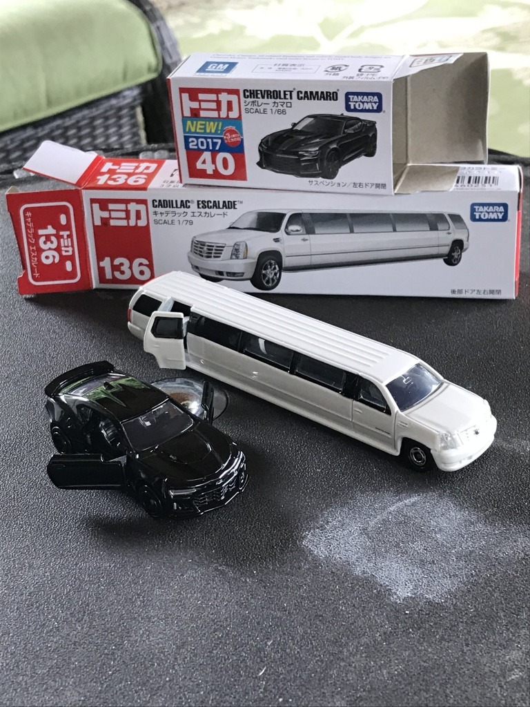 September 22, 20187 yr Got these in the mail today from Japan. Tomica Escalade stretch limo and Camaro ZL1.
