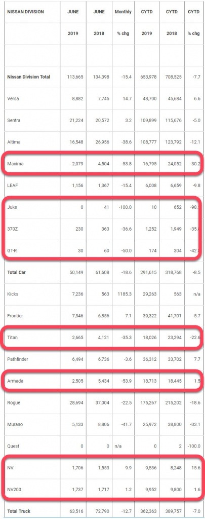July 29, 20196 yr There's one disadvantage to being partially owned by the French, they know how to cut things off when they need to. We reported last week that due to lagging sales and plunging profits, Nissan was readying to layoff 12,500 employees globally, or 9% of their global workforce. It seems that other cuts are on the way as well, though we may not see as much of it here in the U.S. Along with the 9% cut in jobs will be around 10% of its global lineup as well. First to go will be the low-end models in developing markets like India. Their overseas brand Datsun could see the bulk of the cuts, but the US will lose models as well. Expect coupes and hatchbacks to be the first to go, the Versa hatchback for example will not be returning for 2020, replaced by the more crossover-like Kicks. Which coupe might die? The Nissan 370Z, the Nissan GT-R, and the Infiniti Q60 are prime targets. Deliveries of the Infiniti Q60 are down 48.8% as of June. In Sedan-Land, the Maxima fell 30% and the Altima, which is all-new, is down 12.1%. But it isn't just cars that could get kicked to the curb. The Nissan Titan sales are down 22.6%, selling a mere 18,026 copies in the first half of this year. This trails even the slow selling Toyota Tundra by some 36,000 units. The Murano is down 33% year to date. So if you're wondering which models may have their head in the Guillotine, take a look at our Sales Figure Ticker for Nissan for June and put a big red question mark on them. View full article