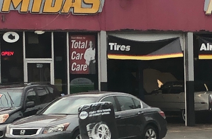 October 10, 20196 yr '63 Coupe deVille, black vinyl top over white, solid unrestored shape, at the Midas assumedly for pipes.