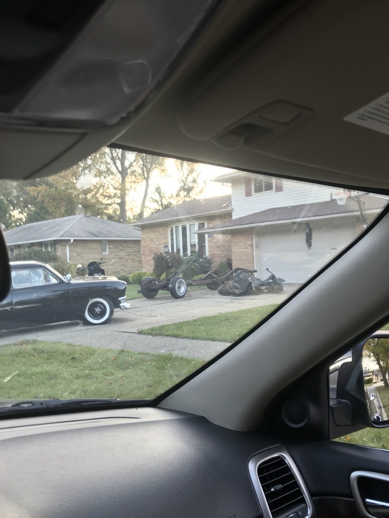 October 22, 20196 yr Author Going out for taco Tuesday dinner earlier, saw out of the corner of my eye a black w/ white top '56 Thunderbird down the next street over as I drove past...alas, it was gone when I came home later. I did stop and photograph this shoebox Ford 2 streets over....same house where I photographed a rusty one a few months ago...wonder if that chassis and debris are what's left of the rusty one.
