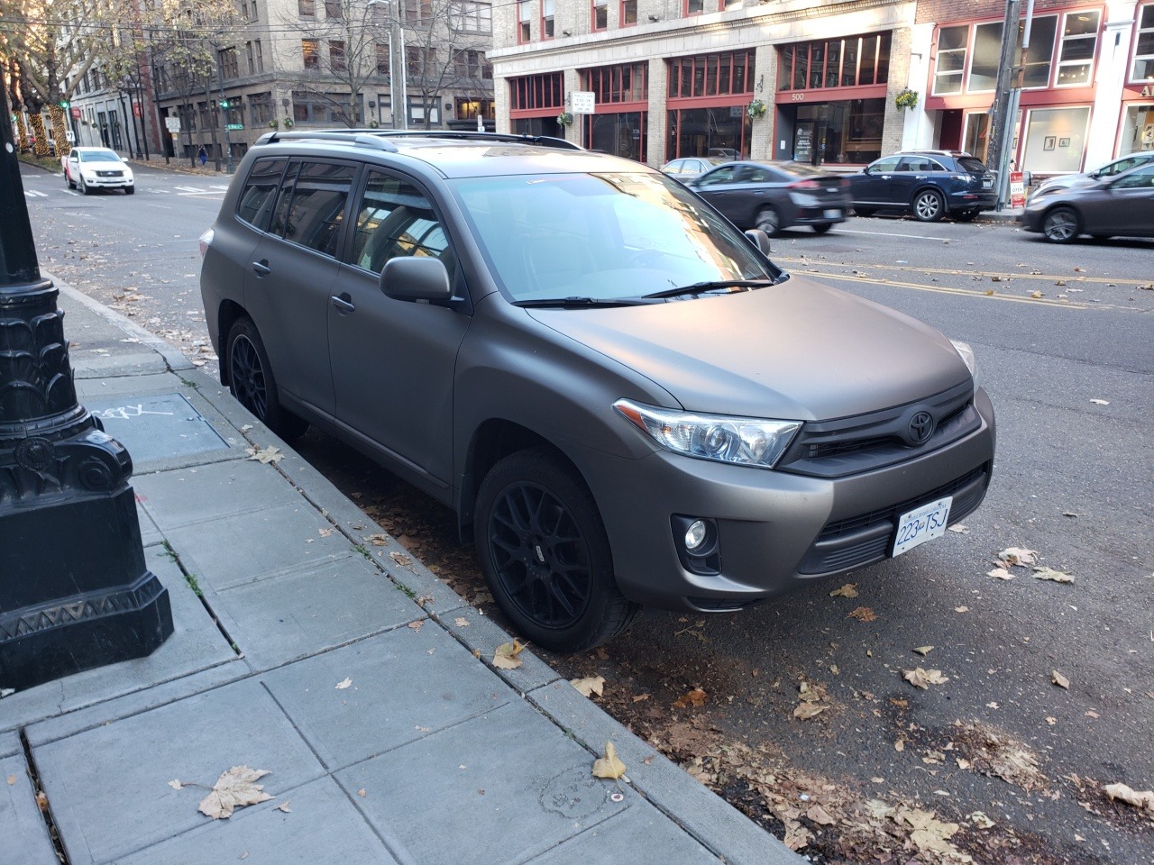 November 6, 20196 yr 15 hours ago, dfelt said: The amount of Matte paint job autos sure has grown. This I am pretty sure is a custom paint job. First Avenue South? Near Jackson? South of Pioneer Square? It's been so long, yet I still remember some of the street names. (There's also a mneumonic device for the adjacent named streets with paired first letters.) I very much like the new enamel (non metallic) charcoal gray that Chrysler is featuring. It looks great on a Charger. On that vehicle, NO. Voila: