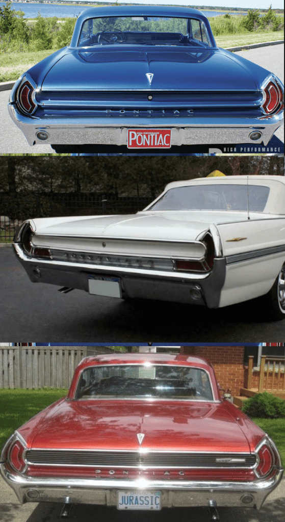 December 22, 20196 yr Author Pontiac, unquestionably the style leader throughout the 1960s, had a number of coved rear end treaments; '59, then '61-67, but they never contrast-painted them, despite (IMO) some of them really calling out for it. '67 Grand Prix : Below is '62 [from top to bottom: Catalina, Bonneville, GP] : In the case of the '62s, Pontiac certainly didn't ignore rear details- the Bonne & GP getting unique die-cast trim panels... and the GP did have black paint between the chromed bars. The '62 GP is probably the closest Pontiac came to a contrasted cove panel. Just picture, if you will, that the '62 decklid came to a edge and fell straight down to the rear bumper. Not as engaging or detailed. Edited December 22, 20196 yr by balthazar