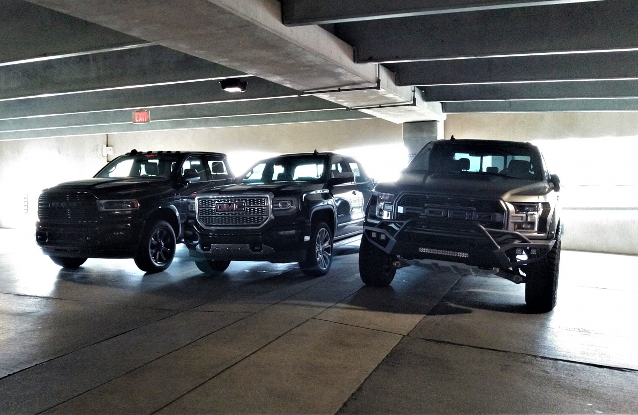 I bought a few things, came back, and, sure enough, an LA Fitness dude opened up the Ford truck to get into it.  I asked him if this trio was staged.  He said it wasn't.  Of these three, the prize for the front grille (without all the added on stuff) goes to Ford.