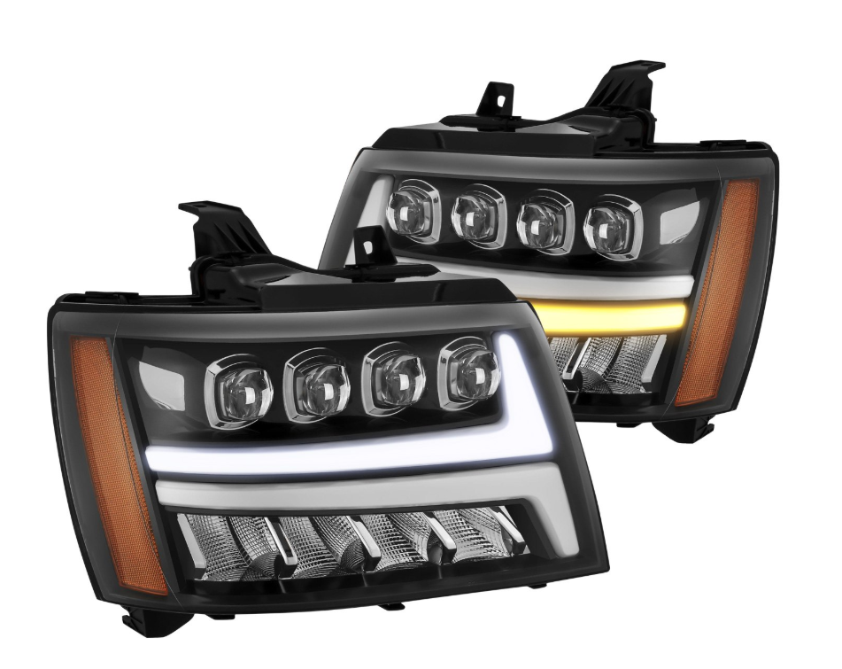 AlphaRex For 07-14 Chevy Tahoe/07-14 Suburban/07-13 Avalanche Polished  Black DRL LED Tube Dual Projector Headlights Left/Right Replacement  Assembly: Amazon.in: Car & Motorbike