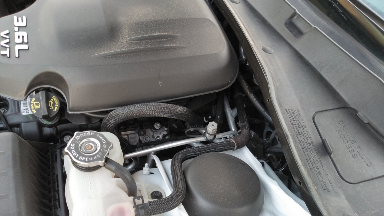 August 23, 20205 yr Author PHOTOS - Exterior and mechanical Here's a sleek looking Dodge Charger with the Tampa Sunshine Skyway Bridge in the background, taken from Fort De Soto An angled rear three quarter view of the Dodge Charger Great lines ... and the latest rear light bar is the best design to come along The latest grille looks clean, sort of merges with the headlamps, and works well blacked out An "aerial view" of the Dodge Charger Engine bay: 3.5 Pentastar V6 - 292 hp - in RWD set up ... big air intake, small battery area (unless they've stashed it elsewhere), strut towers (with black grommets at the top) ... more or less symmetrically laid out, with room to reach things Driver's side view of the engine bay - oil fill cap, coolant recovery bottle, brake fluid (and master cylinder?) under the black rubber lid (at the right) ... but I couldn't find the transmission fluid dipstick (not sure if this is a sealed unit) Passenger's side view of the engine bay ... looks like 3 direct injection ports on this side of the engine bank, battery hookups here, up front (but the battery may be elsewhere since it looks shallow, just like they did with the last-gen Pontiac Bonneville) ... what was surprising was that the engine sat higher and more forward than in old school RWD cars ... maybe that is because of the rack and pinion system (not sure) Touche'. Just in case you don't know the brand and model of car whose hood you were raising up ... - - - - - End of exterior and mechanical photos