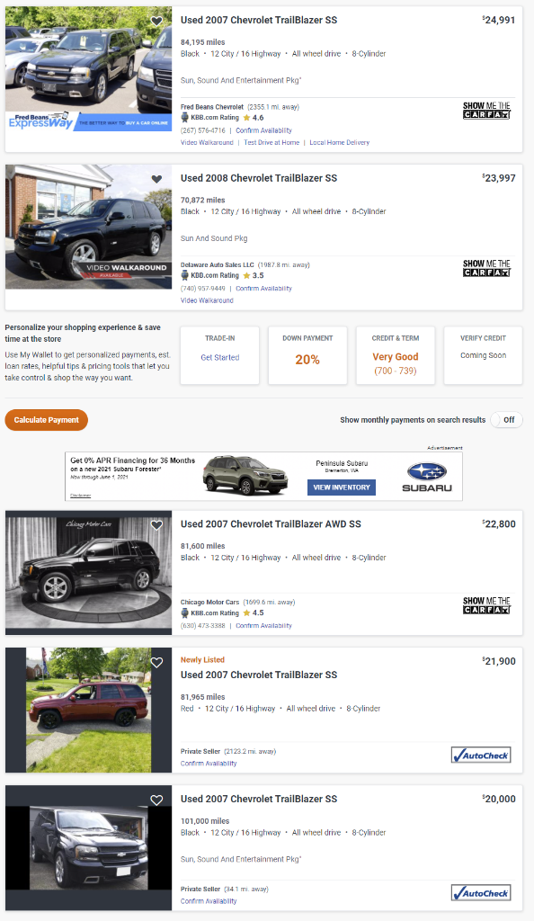 Surprising as I have not checked like forever, but I would say collectible is the limited yearly run of the Chevrolet Trailblazer SS in AWD and RWD models. When I bought my 2008 SS as a CPO I paid with tax and title $24,000. I am seeing on Autotrader that they are still in that area depending on condition and miles.
