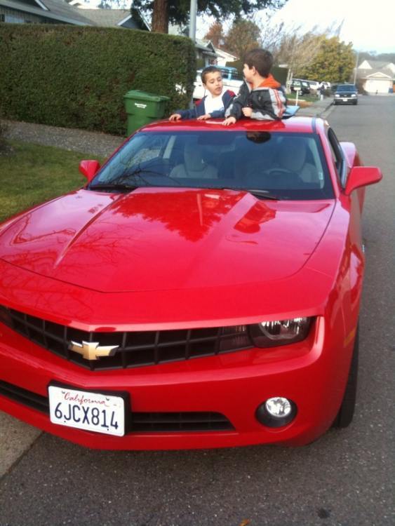 9. I've been in California since Fri 12/18 to visit family for Christmas. When I went to rental car counter, the agent presented the Camaro upgrade option, so I took it out of curiosity. The choices with gray or red, so I took red (being Christmas and all). It's a V-6 car, pretty basic, but has still generated a fair amount of conversation wherever I've taken it. I've put about 600-700 miles on it so far and will write up driving impressions once I get some free time. Here's a few quick iPhone pics to get you started until I can take some with my real camera. Quick shot of car Backseat shot of my nephew's booster seat before picking him up at daycare in the Camaro Kids at play in the fullsize Hot Wheels car while their parents take pictures More later...
