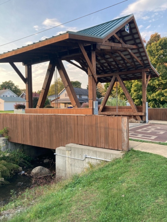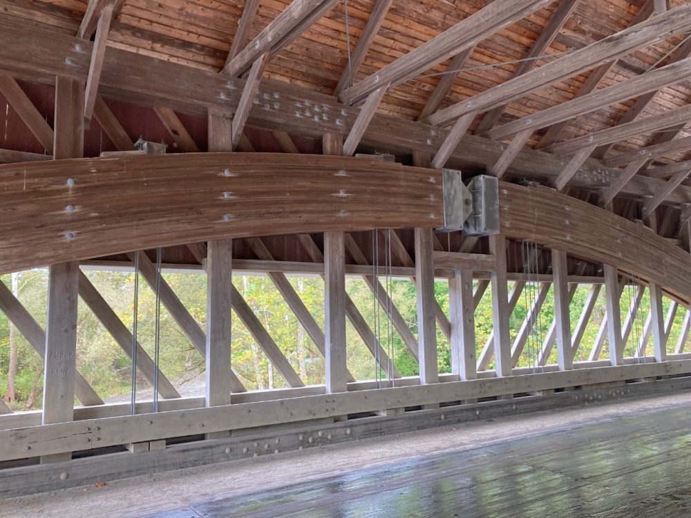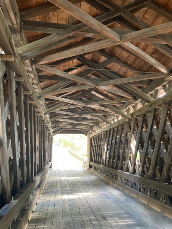 Between Sat and Sun I saw 11 or 12…Ashtabula County has 19, over 100 across Ohio. I did see a red one and a short one (18 ft span). The woodwork inside this bridge reminded me of a leaf spring upside down. I think @A Horse With No Namewould appreciate the craftsmanship of these bridges.