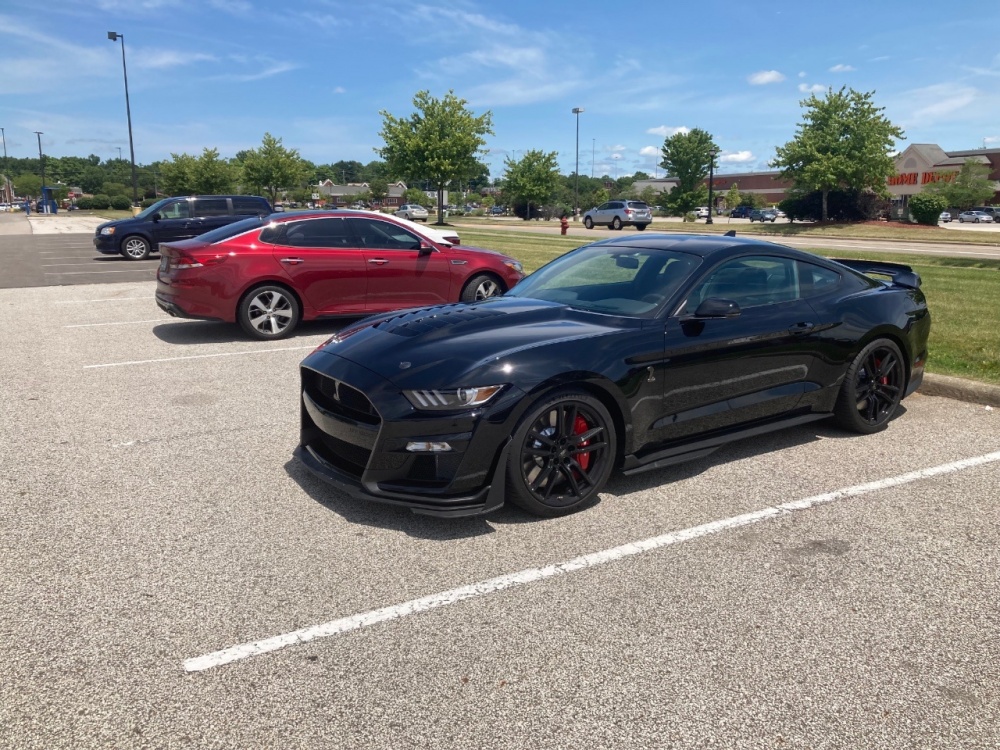 Sitting at the edge of a Wal-Mart lot was this Shelby GT500. I like the black with stripe delete color scheme over the usual day glo cartoon colors these seem to come in.