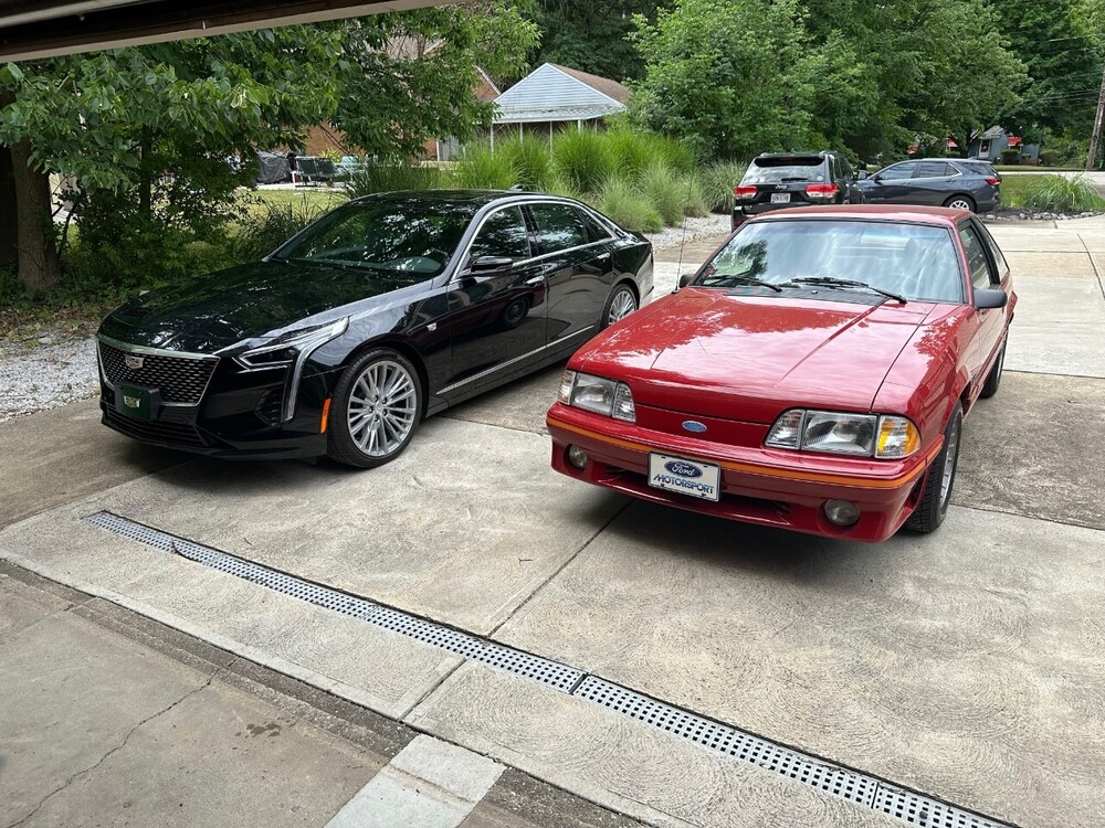 Random pics from my birthday Friday...took my Mustang for a spin in the morning, then went out to a great local lakefront seafood place for dinner...when I came out, found the valet had parked my CT6 out front next to a Bentley coupe.